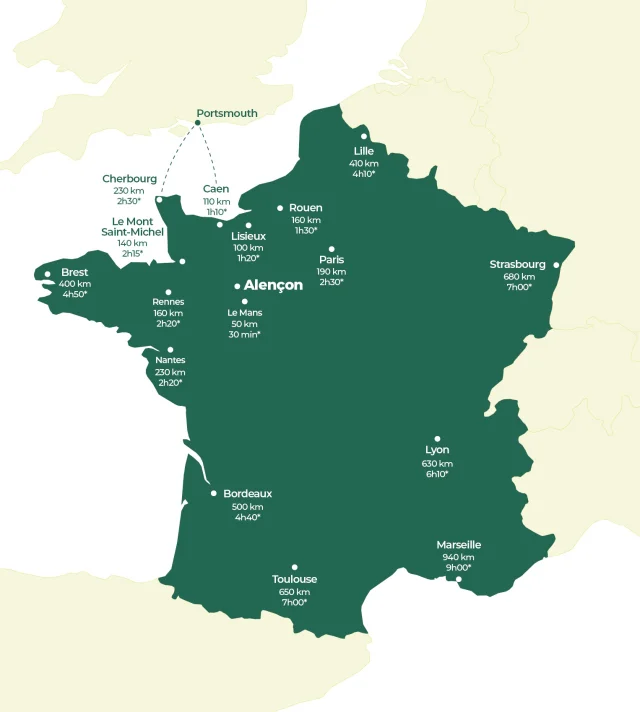 Alençon est très facilement accessible depuis Paris par la N12 ou par l’A10, l’A28 et l’A11,